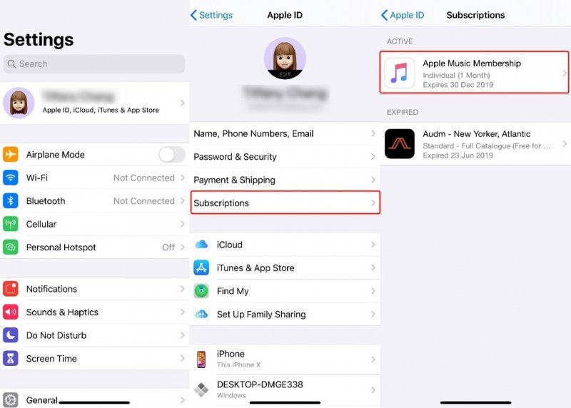 Apple Music şarkılarını çalamamanızın nedeni, satın aldığınız aboneliğin sona ermesi olabilir. Apple Music'in farklı abonelik planları sunduğunu ve planı yenilemek için ne zaman ödeme yapacağınızı bilmeniz gerektiğini unutmayın. Bunu şu şekilde kolayca kontrol edebilirsiniz: