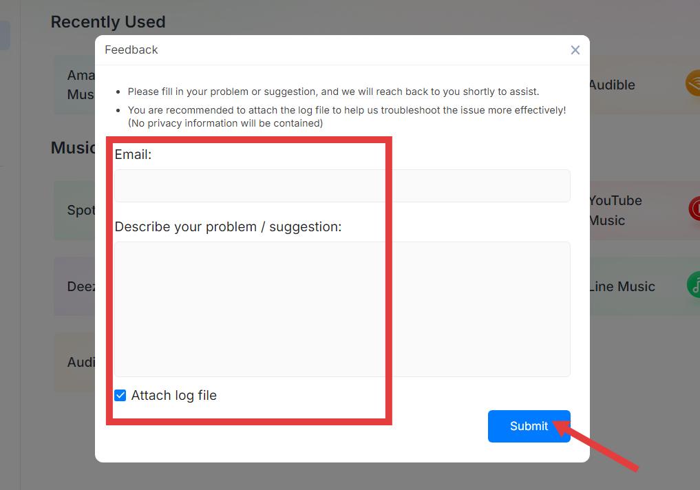 You can fill in your problem or suggestion here, and we will reach back to you shortly to assist. Please attach the log file to help us troubleshoot the issue more effectively! (No privacy information will be contained).